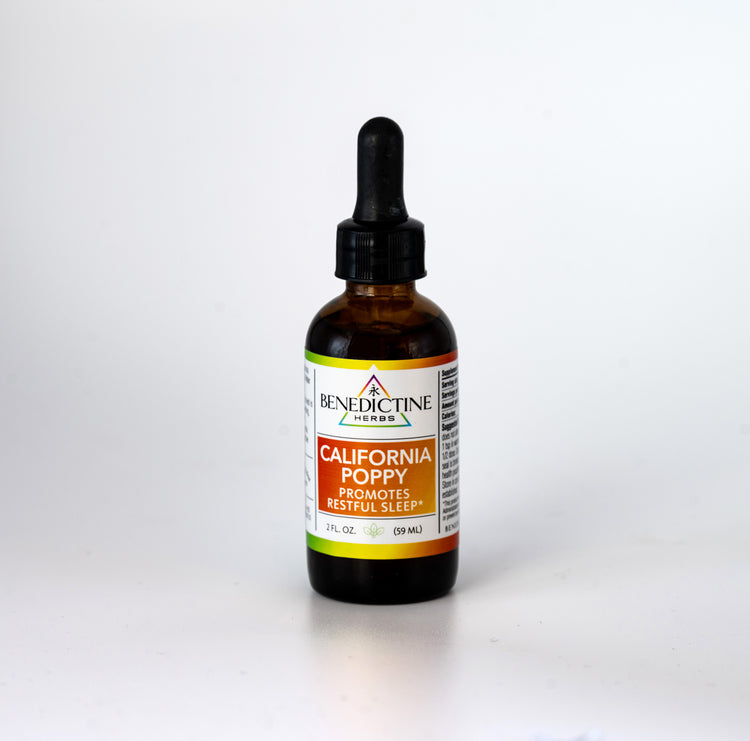 Organic California Poppy (Eschscholzia californica) in Organic Gluten-Free Alcohol and Distilled Water.