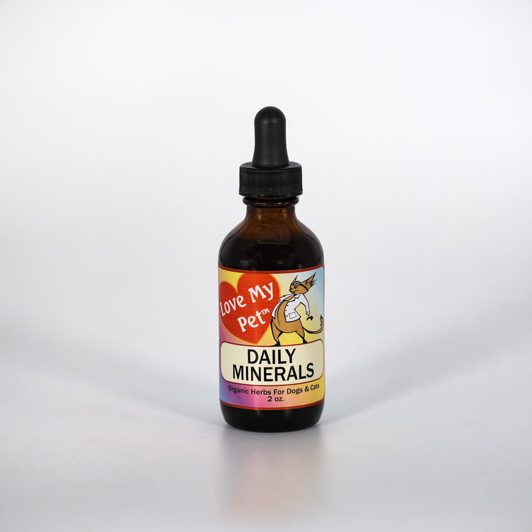 LoveMyPet Daily Minerals is a plant-sourced mineral extract made from a blend of mineral-rich botanicals to help support everyday nutrition and vitality in cats and dogs.*